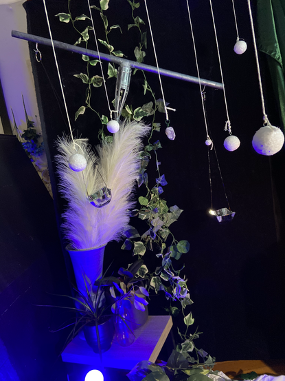 I plan doing the shoot over again and adding the installation of a curtain in front of the set but slightly pulled back. When I do the shoot over again I plan on using more of my actual plants. Possibly also having tarrot cards hanging along with the stars and crystals. I'm also GOING TO MAKE SURE I USE FISHING WIRE INSTED OF COTTON TWINE!!!